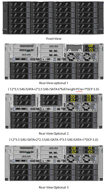 | Storage Controller | Supports RAID 0/1/10/5/50/6/60. RAID controller features cache supercapacitor protection, disk roaming, remote Web configuration, and secure boot. |